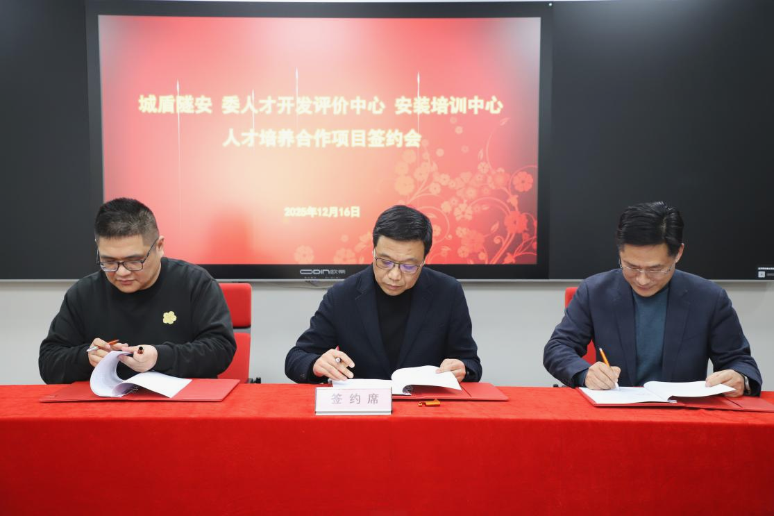 为深入贯彻落实住建行业人才发展战略,推动教育、科技、人才协同发展与产学研用深度融合,2025年12月16日下午,城盾隧安地下工程有限公司、上海市住房和城乡建设管理委员会人才开发评价中心和上海市安装人才培训中心联合举行人才培养合作项目签约会议。本次签约会议以“深化科研合作,共育技能人才”为主题,旨在正式确立三方产学研用战略合作关系,明确合作方向与核心内容,凝聚发展合力,为上海住房和城乡建设行业高质量发展注入坚实人才动力。